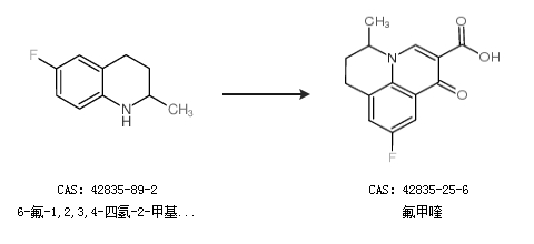 2.通過(guò)6-氟-1,2,3,4-四氫-2-甲基喹啉合成氟甲喹