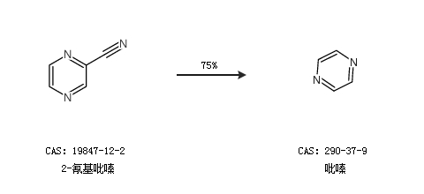 1.通過2-氰基吡嗪合成吡嗪,收率約75%;