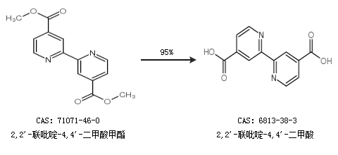 1.通過2,2''-聯(lián)吡啶-4,4''-二甲酸甲酯合成2,2''-聯(lián)吡啶-4,4''-二甲酸,收率約95%;