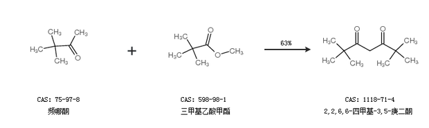 1.通過頻哪酮和三甲基乙酸甲酯合成2,2,6,6-四甲基-3,5-庚二酮,收率約63%;