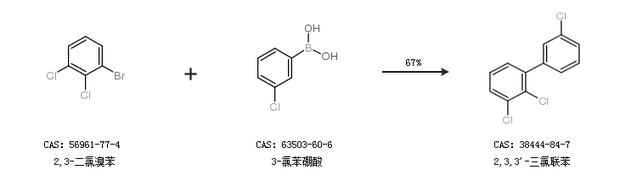 1.通過(guò)2,3-二氯溴苯和3-氯苯硼酸合成2,3,3''-三氯聯(lián)苯,收率約67%;