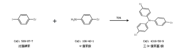 2.通過(guò)對(duì)溴碘苯和4-溴苯胺合成三(4-溴苯基)胺,收率約70%;