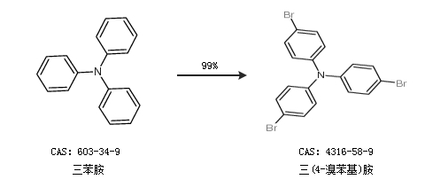 1.通過(guò)三苯胺合成三(4-溴苯基)胺,收率約99%;