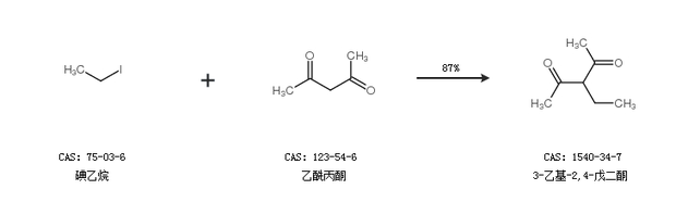 1.通過(guò)碘乙烷和乙酰丙酮合成3-乙基-2,4-戊二酮,收率約87%;