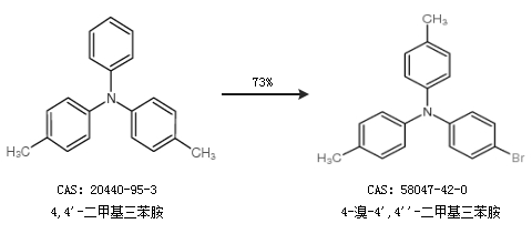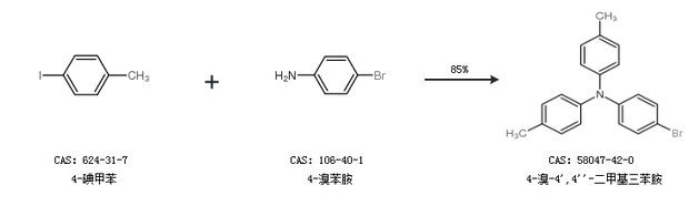 2.通過4-碘甲苯和4-溴苯胺合成4-溴-4'',4''''-二甲基三苯胺,收率約85%;