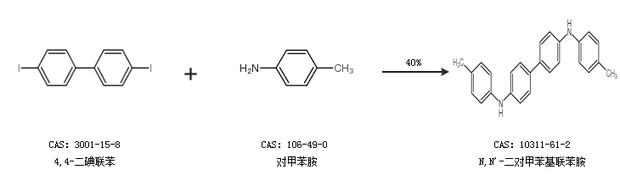 1.通過4,4-二碘聯(lián)苯和對(duì)甲苯胺合成N,N''-二對(duì)甲苯基聯(lián)苯胺,收率約40%;