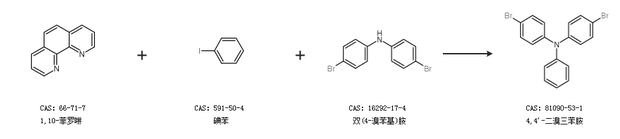 2.通過(guò)1,10-菲羅啉、碘苯和雙(4-溴苯基)胺合成4,4''-二溴三苯胺