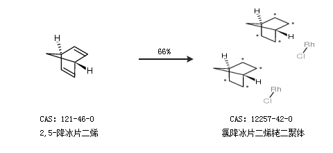 1.通過2,5-降冰片二烯合成氯降冰片二烯銠二聚體,收率約66%;