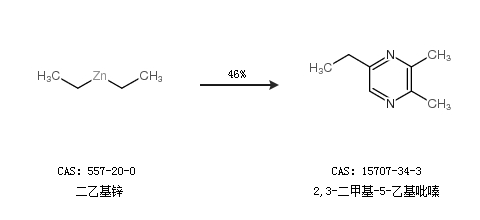 1.通過二乙基鋅合成2,3-二甲基-5-乙基吡嗪,收率約46%;