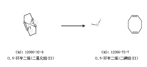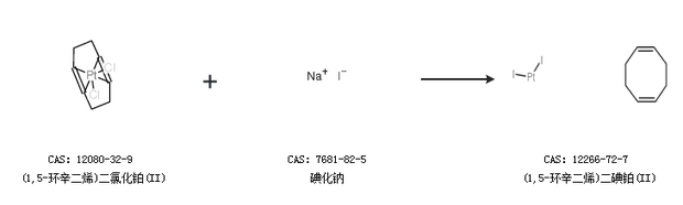 2.通過(guò)(1,5-環(huán)辛二烯)二氯化鉑(II)和碘化鈉合成(1,5-環(huán)辛二烯)二碘鉑(II)